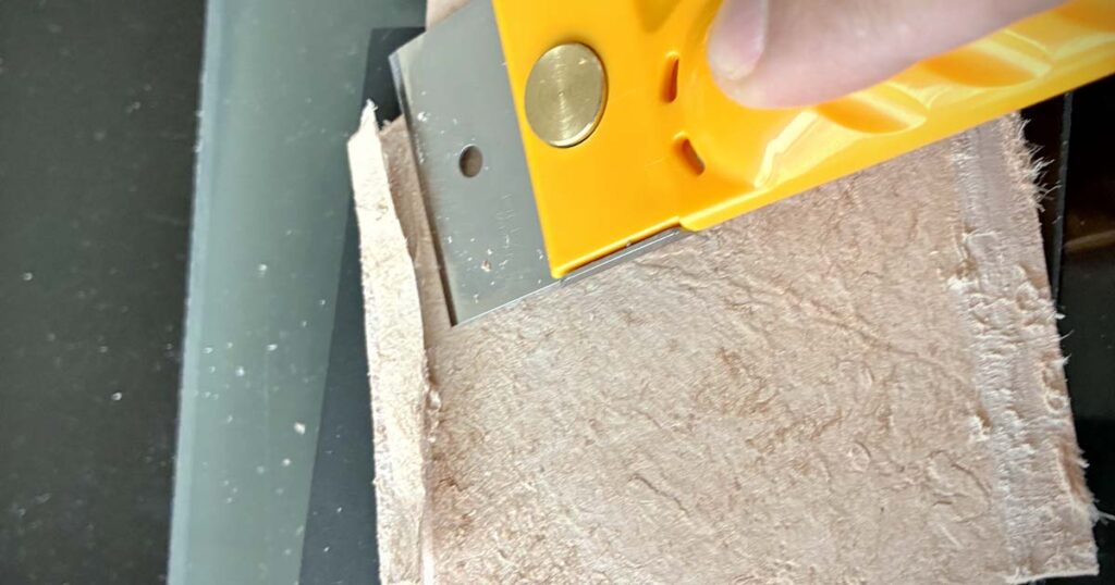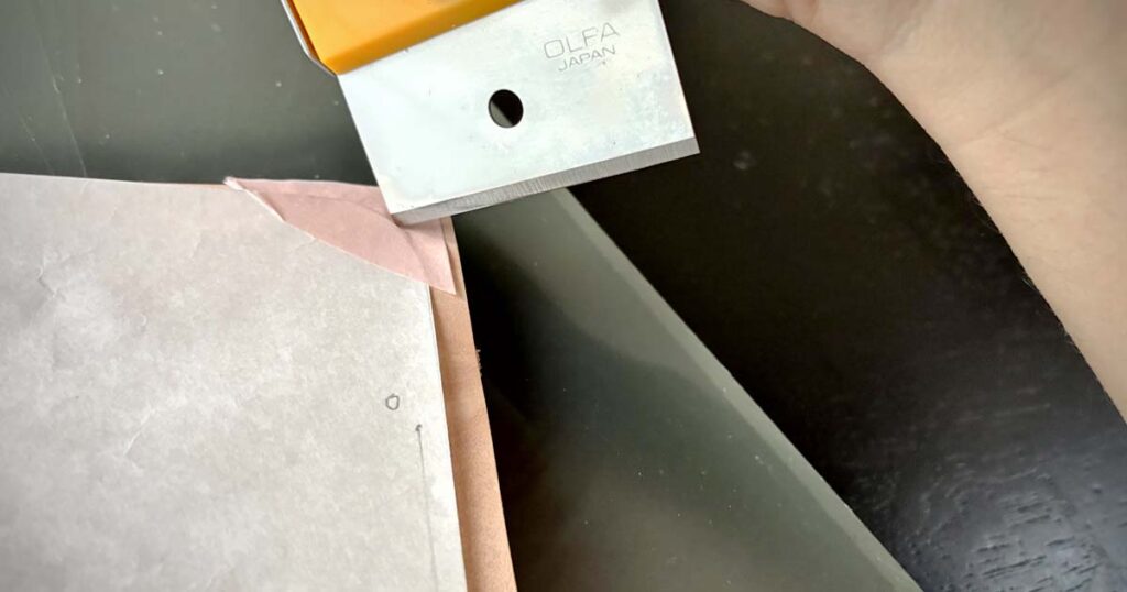 裁断にはOLFAの「別たち」を使用。実際に切る中で、刃の角度による使い分けが見えてきました。